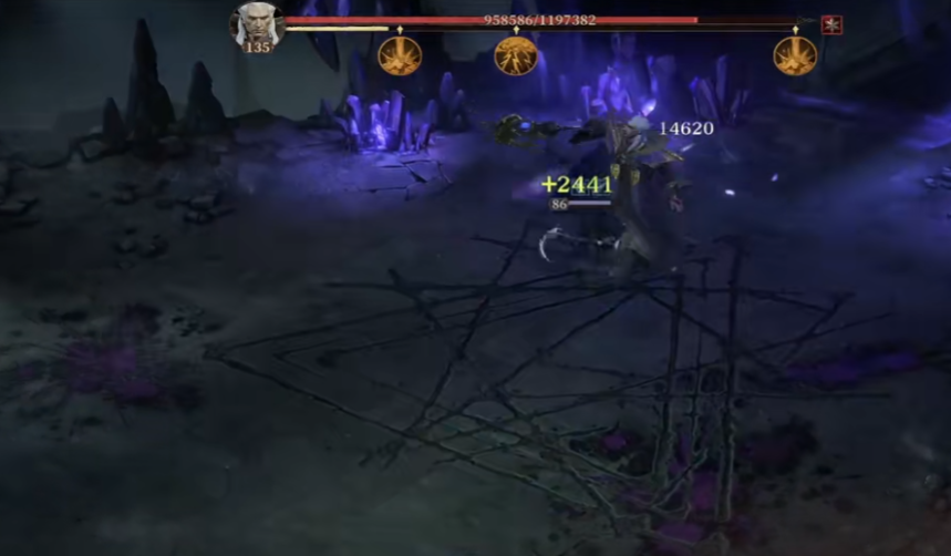 在第二阶段时boss的技能冷却时间会变得更长,当它的血量下降到一定程度时会召唤出两只小怪。其中一只小怪会为它施加无敌的护盾,因此需要优先击杀,另一只小怪则躲在死角很难去直接进行攻击,需要手动操作来慢慢的进行消磨。到了第三阶段的难度就很小了,自动技能就足以应对。