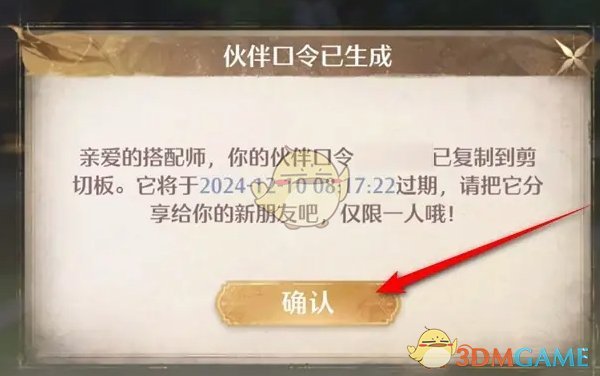 4、最后获取已经生成的伙伴口令,分享给其他玩家即可让他人添加为好友。